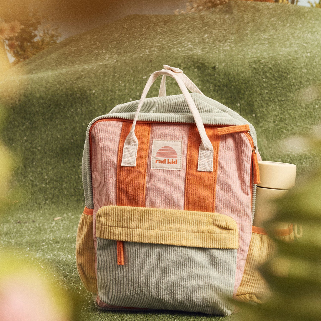 Made from organic cotton corduroy and lined with recycled polyester, mother earth will love this colourful backpack as much as your rad kid!