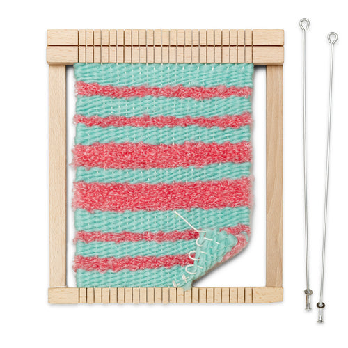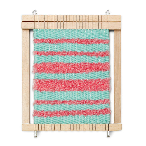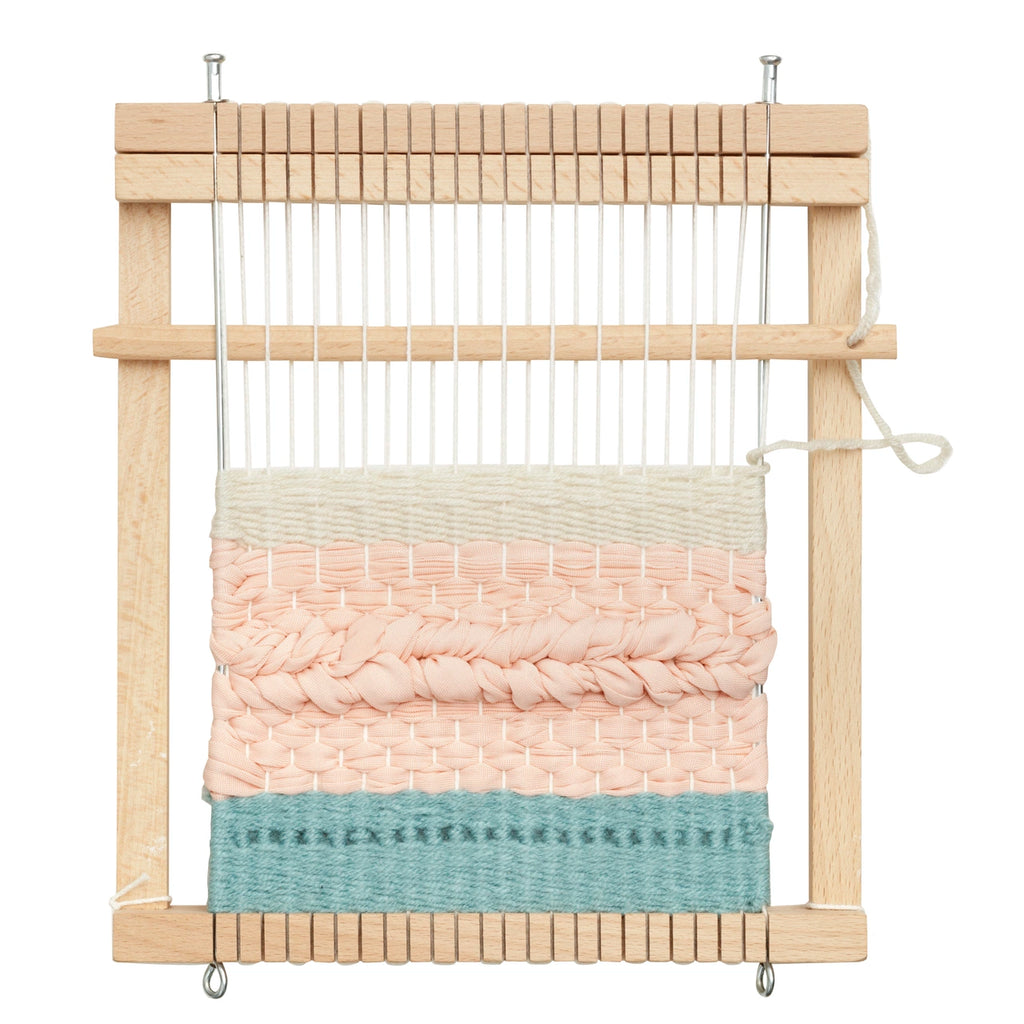 This frame allows you to weave cloths 14 cm wide and is perfect for busy little hands!