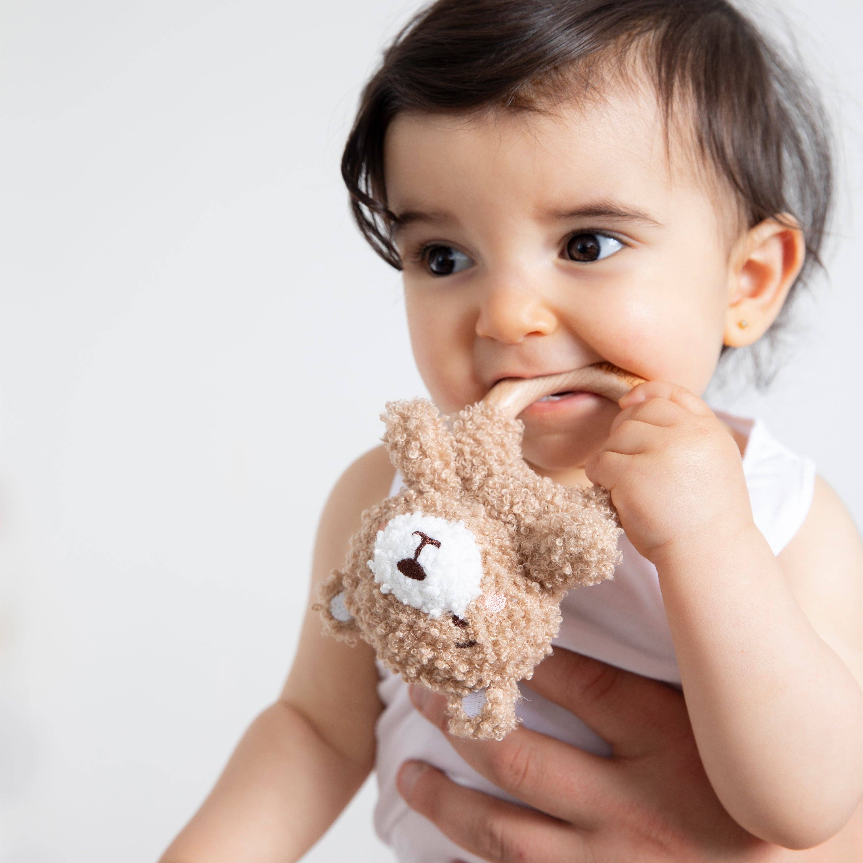 LIVING TEXTILES Teething Ring & Dummy Chain Gift Set - Cuddly Bear