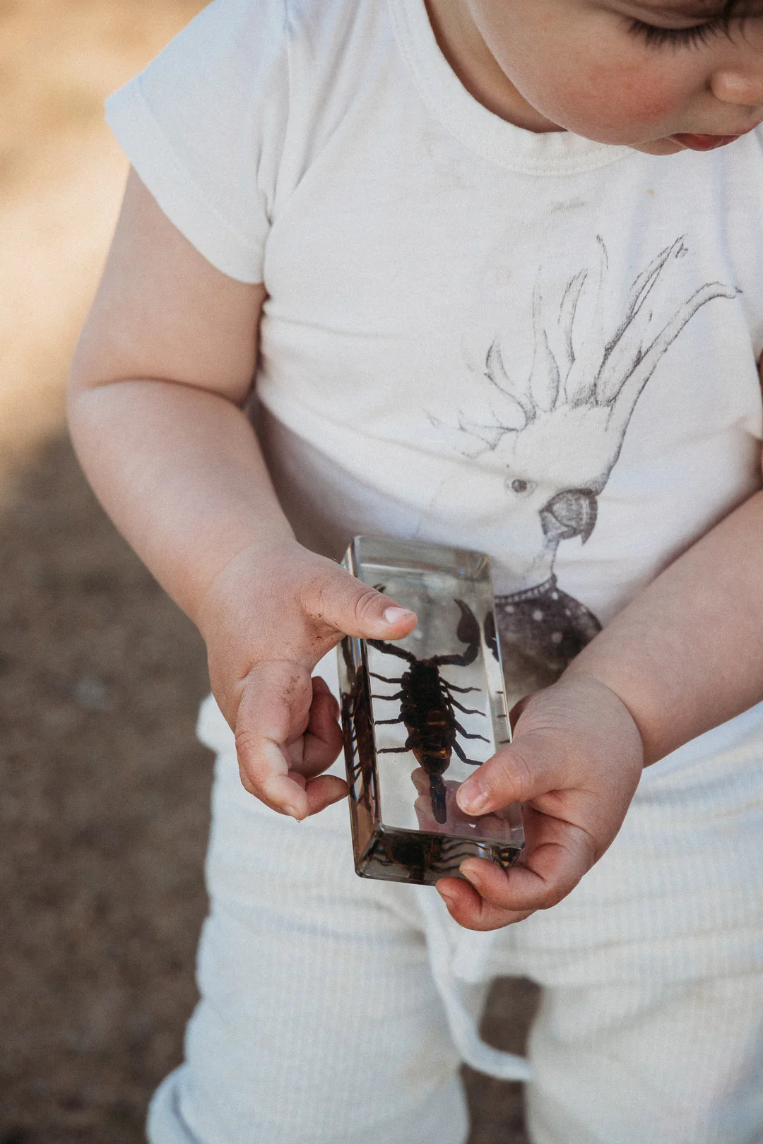 Perfect for curious minds, this Black Scorpion Specimen invites hands-on discovery of one of nature’s most resilient and mysterious creatures. Scorpions are built to survive in the harshest environments—and incredibly, they even glow under moonlight!