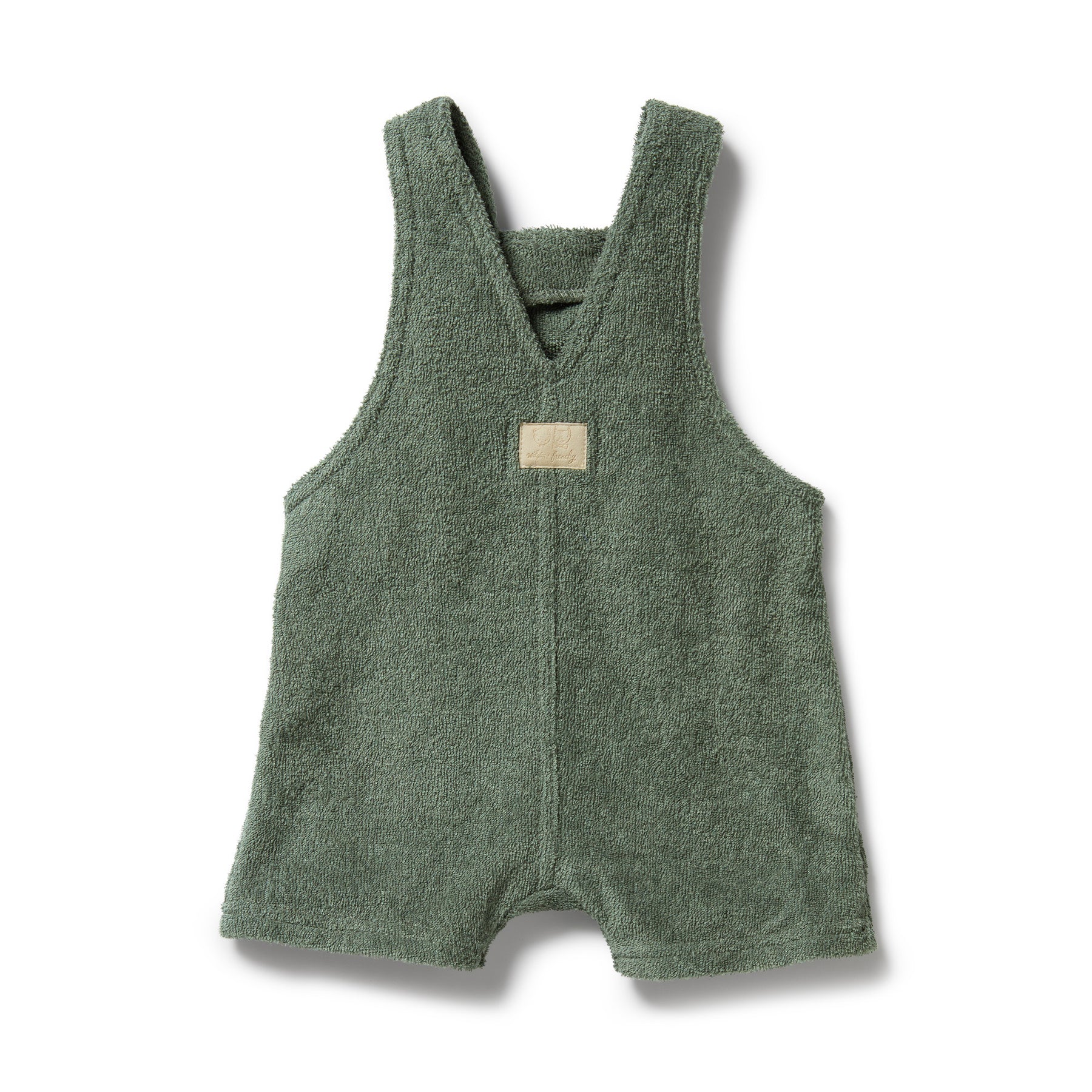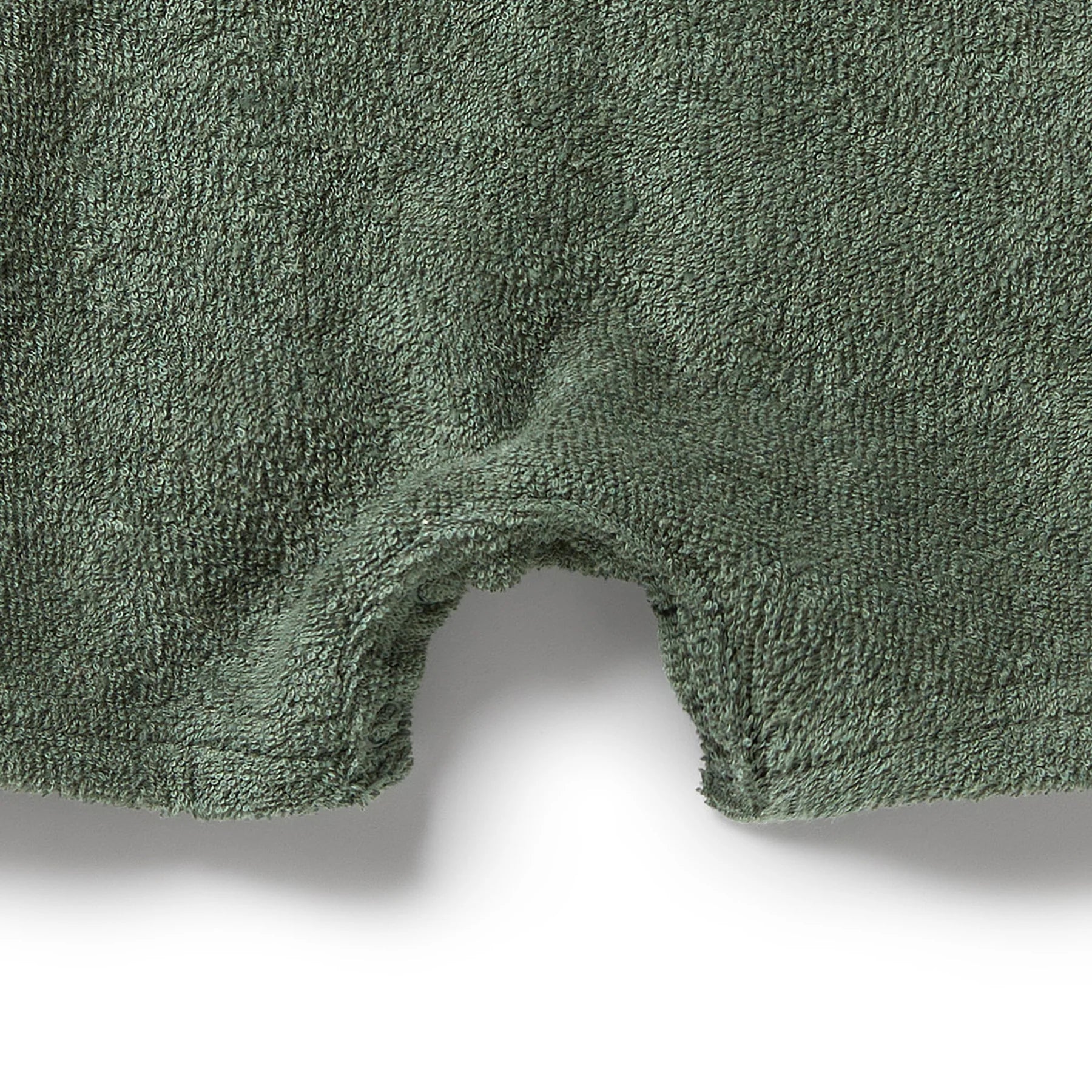 Keep your baby comfy and stylish in this moss green baby overall, made from soft and absorbent GOTS-certified organic cotton terry towelling