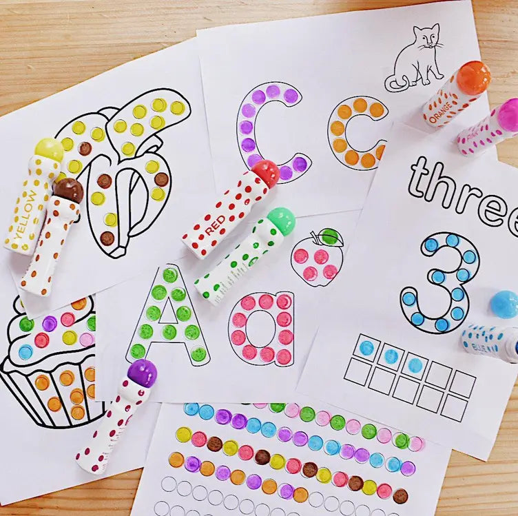 Designed with comfortable easy to grip bottles for little hands, these Spot and Dot Markers are fantastic for the development of both fine motor skills and hand eye coordination. The large sponge tip is mess free, no splash, washable as well as easy to set up and clean!