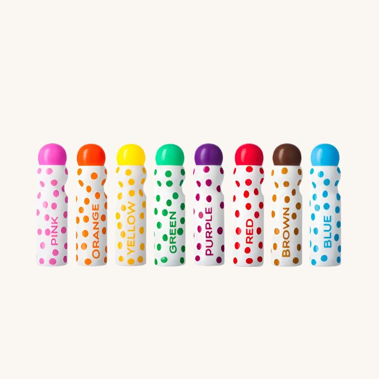 Tried and tested with kids of all ages, our Spot and Dot Markers are super fun to use. Kids learn to explore colour palettes, mix, blend and layering as they go, as well as creating beautiful masterpieces.