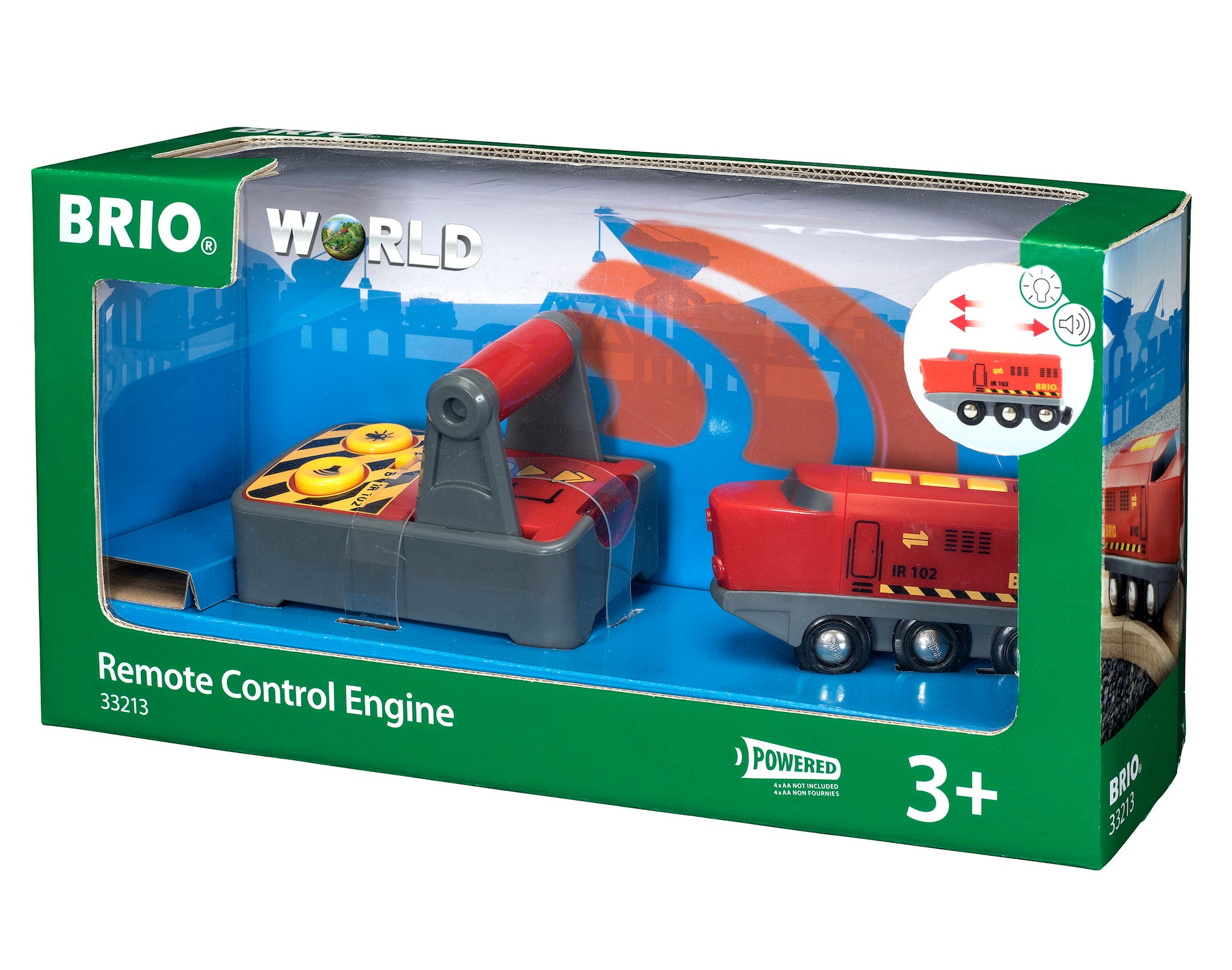 This is the 2 piece Remote Control Engine that will follow your every command. The unique controller has easy to use reverse and stop functions as well as two different forward speeds. Press the buttons for light and sound effects. Train is controllable also with buttons on engine.