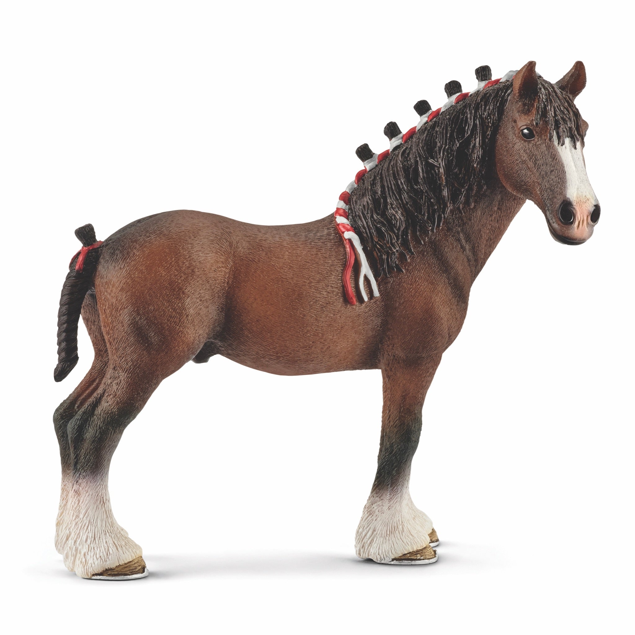 Clydesdales are large, coldblood horses with long, powerful legs and long, thick hair over their fetlocks. They are intelligent, brave and – despite their size – extremely gentle.