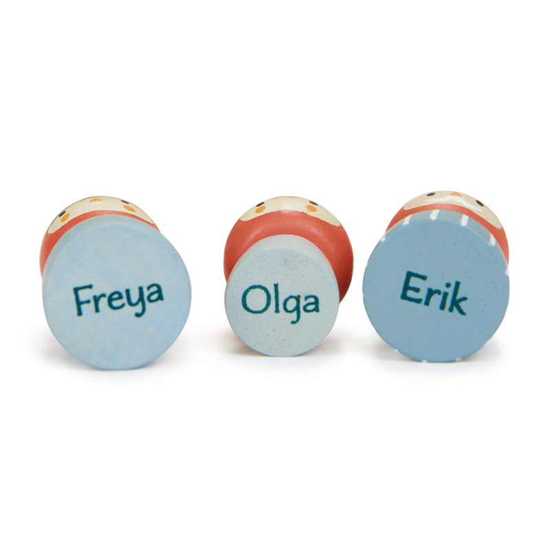 Meet Freya, Olga and Erik, 3 Nordic gnomes living in the deep in the forest. You will find them amongst the toadstools and leaves. Freya the mother looks after Olga and Erik in their leafy glade. The set comes with;