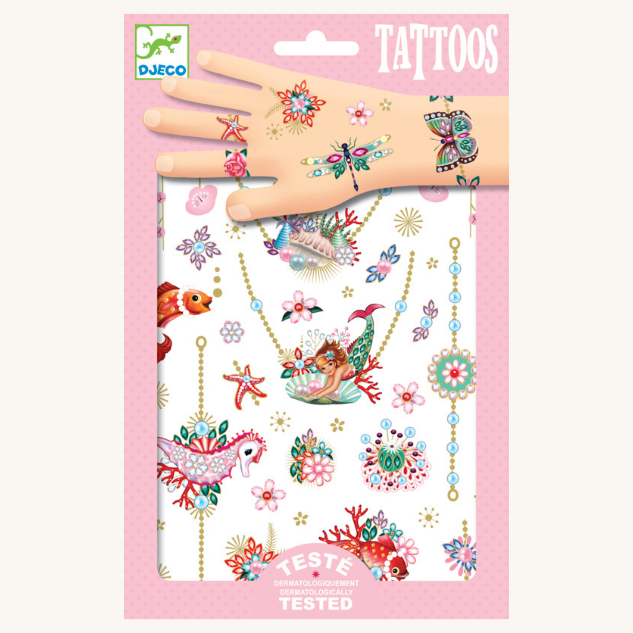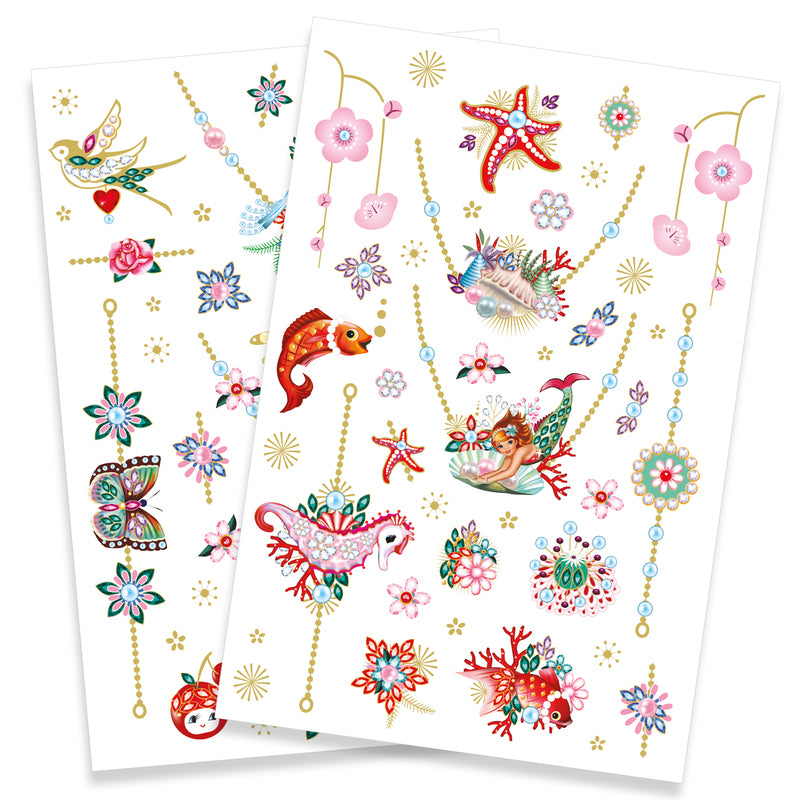A beautiful collection of tattoos featuring jewellery designs and magical animals and characters. Includes a metal like finish. Dermatologically tested.