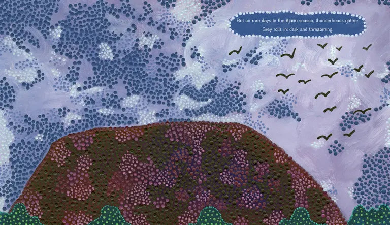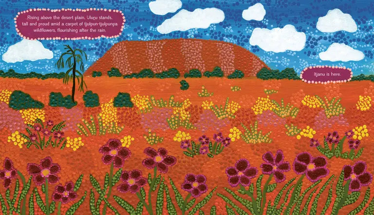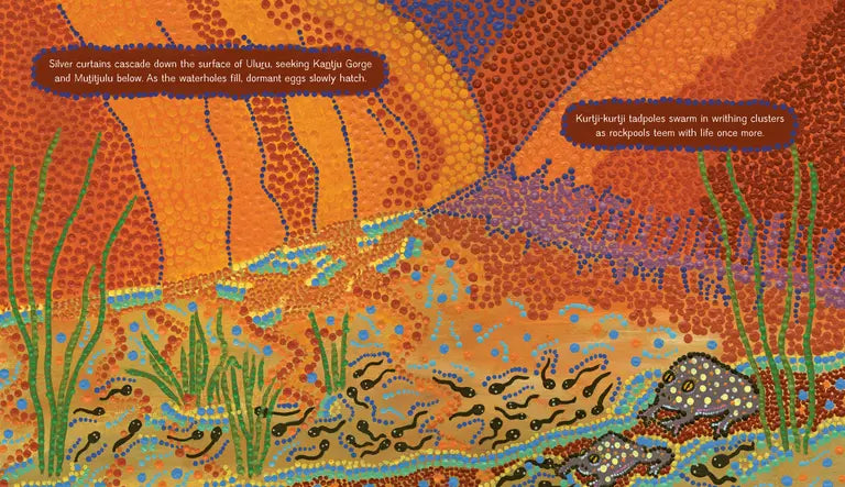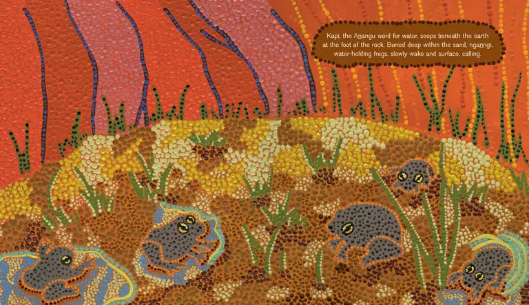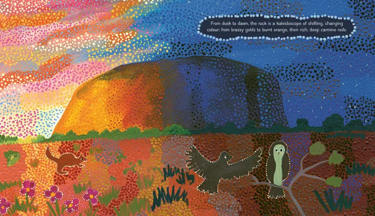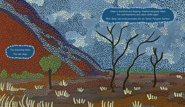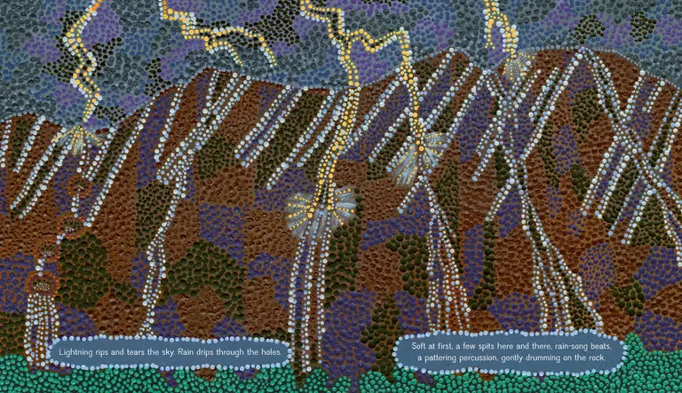 Rain on the Rock celebrates the impact of rain on Uluṟu and the Kata Tjuṯa National Park. Told using vivid imagery, and in harmony with Aṉangu's connection to Country, Rain on the Rock depicts the unique beauty of one of Australia’s most iconic landscapes.