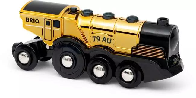 With its shiny gold, metalized paint and classic “choo-choo” sound, the 33630 Mighty Gold Action Locomotive impresses everyone as it flies down the tracks at high speed. This battery-powered toy train is one of the strongest in BRIO World and drives forward and reverse with accompanying light and sound effects. It also features a switch on top which allows you to use the train without the battery function – disengaging the axel for free-wheel rolling. This retro designed train helps your child’s development by promoting logical thinking and improving fine motor skills.