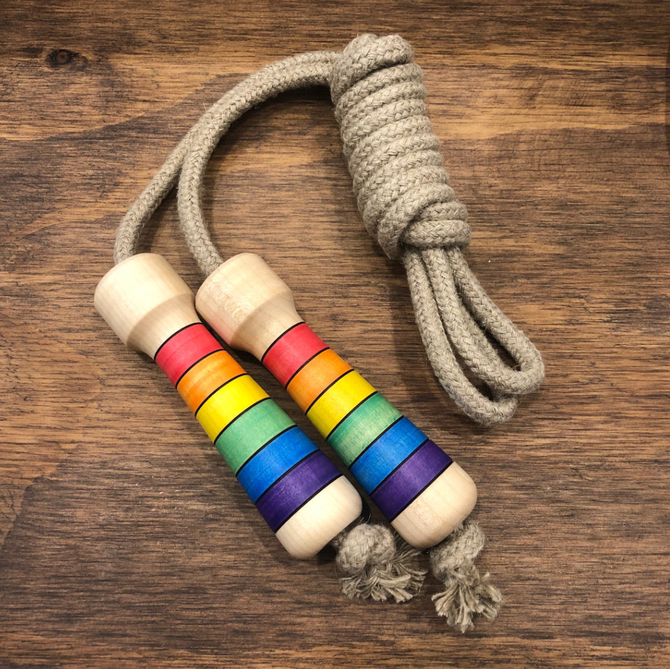 A classic outdoor toy to encourage kids to be active while having fun. This beautiful wooden handled skipping rope is perfect for playtime. Skipping helps with balance, coordination and concentration. This Mader Skipping Rope comes with a beautifully coloured wooden handle and linen rope. Made in Austria.