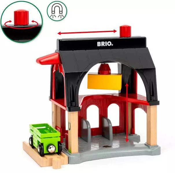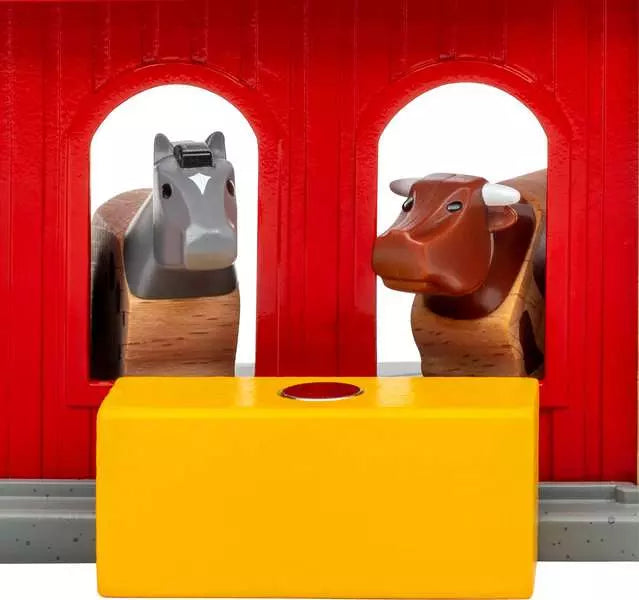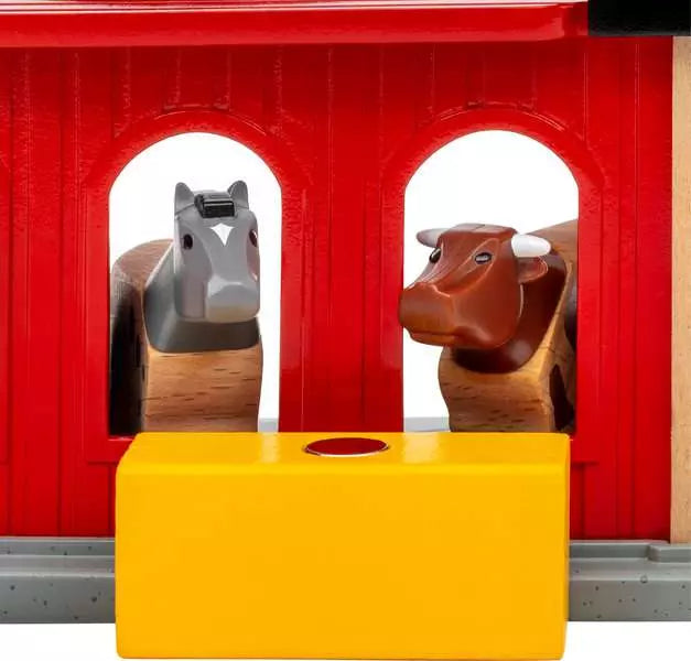 Give your BRIO World animals a nice place to stay with the 36012 Animal Barn. There’s plenty of space inside for all your animal friends as well storage area upstairs for their food. Use the hay loading function on the roof of the barn to pick up the animal food from the wagon below and move it safely in the loft. Build this train setaccessory into a larger layout and you can also use the wagon to transport animals around your BRIO World.