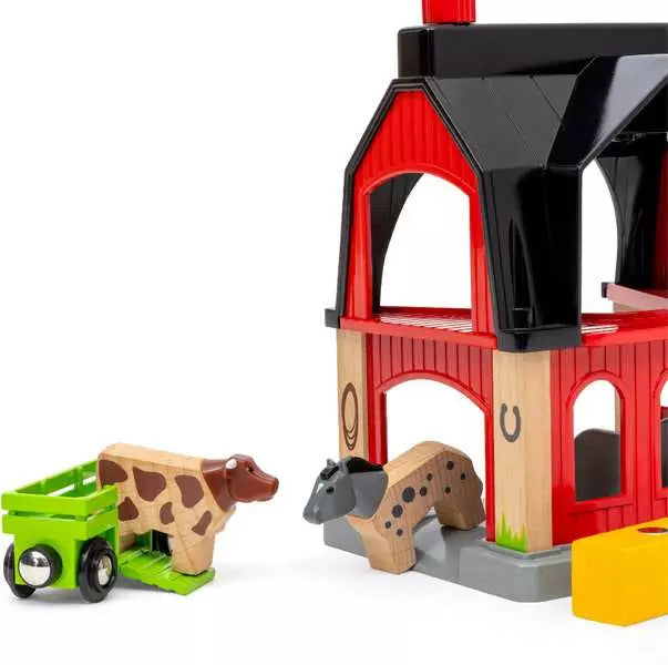 BRIO World is our open-ended play system that grows with your child. All BRIO World toys, from our train tracks to our vehicles and characters, work with each other to create an entirely customisable world that’s great for challenging growing minds. There’s endless combinations of imaginative play waiting to be explored and this playful animal barn accessory fits perfectly into existing farm themed BRIO World products.
