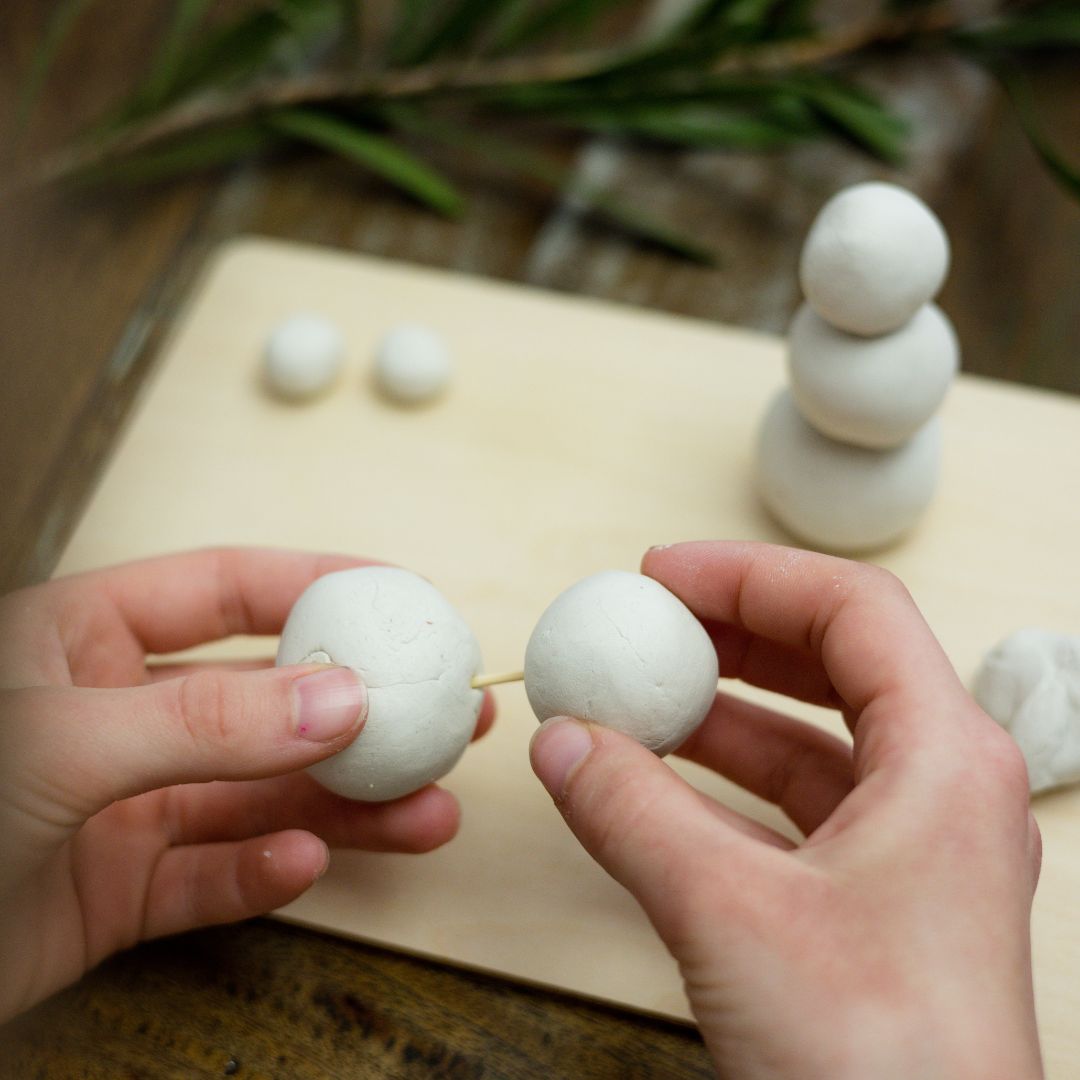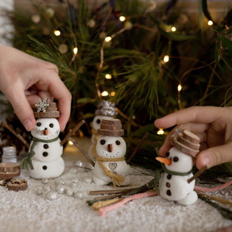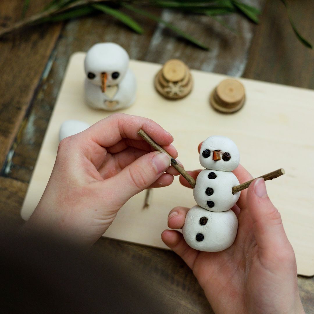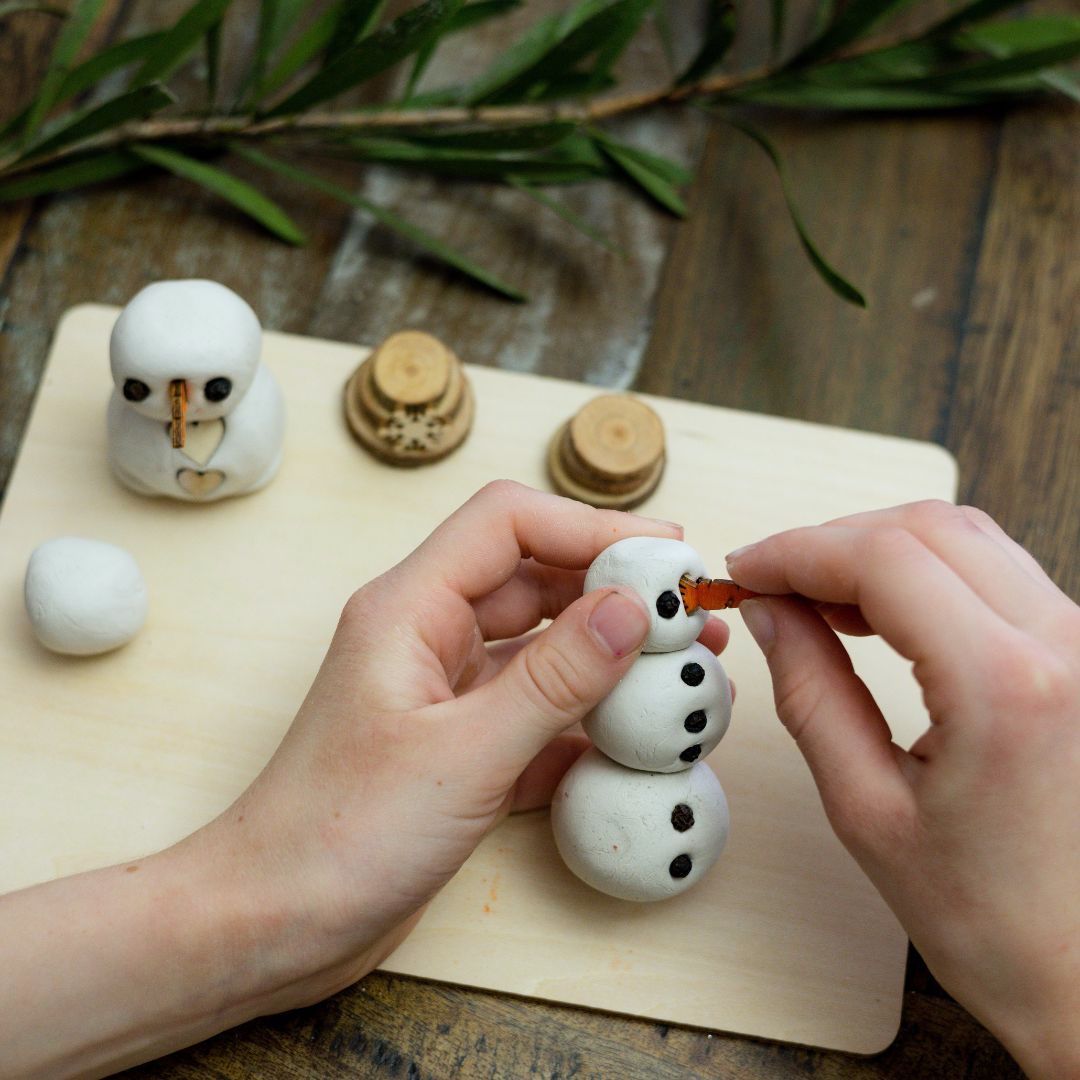 Making clay snowmen is a beautiful calming sensory activity this Christmas.