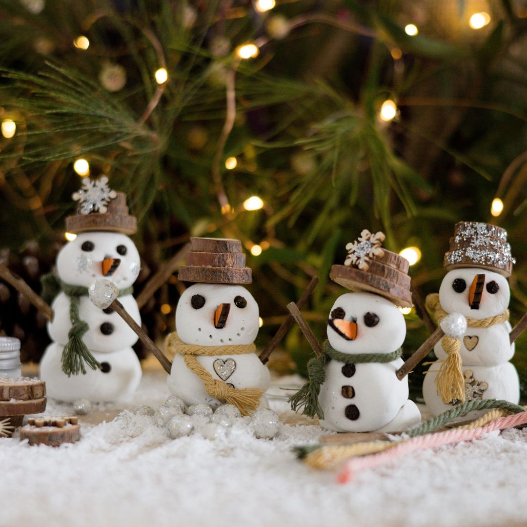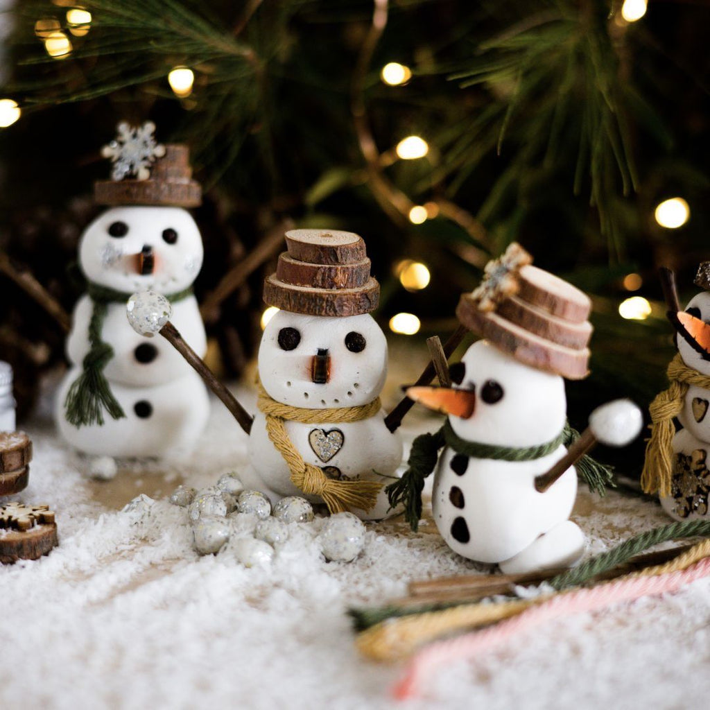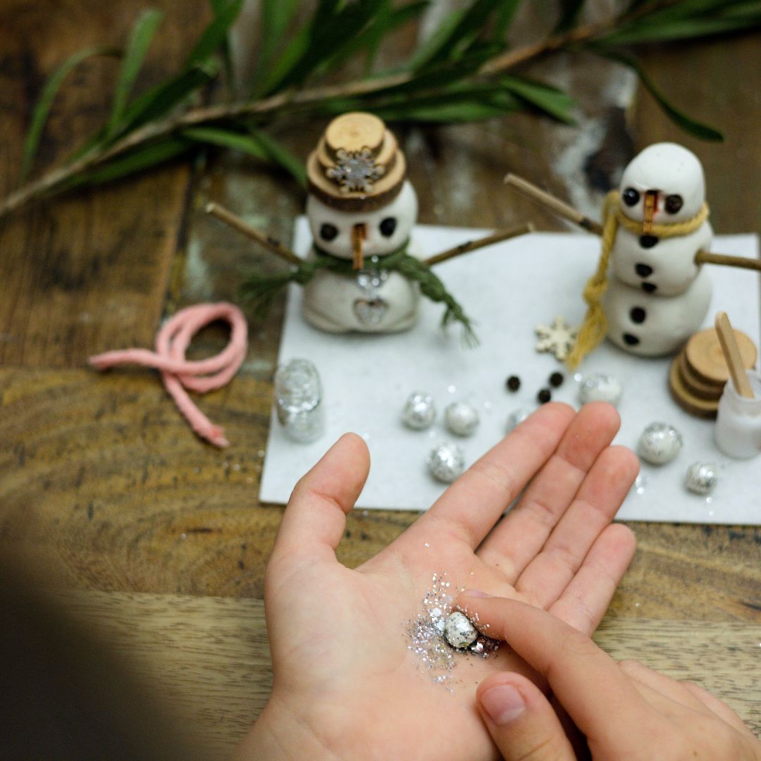 Making clay snowmen is a beautiful calming sensory activity this Christmas.