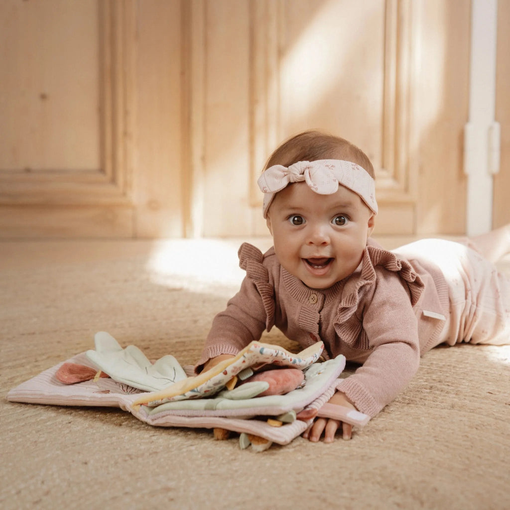 You don't have to be bored with this colorful activity book from Fairy Garden. The sweet deer invites you to take a look at the magical garden. There is much to discover with the different textures and activities, such as a mirror, a rattle and hidden toys.