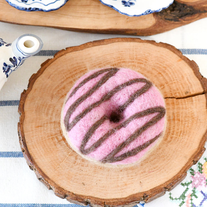 TARA TREASURES Felt Doughnut with Pink Vanilla Frosting and Chocolate Drizzle