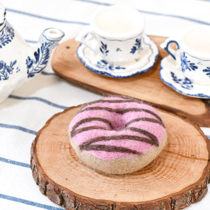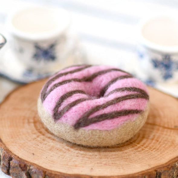 This listing is for 1 felt pink doughnut. Each doughnut has been meticulously needle- felted with dense wool that has been dyed with non-toxic colours, making it safe for play.
