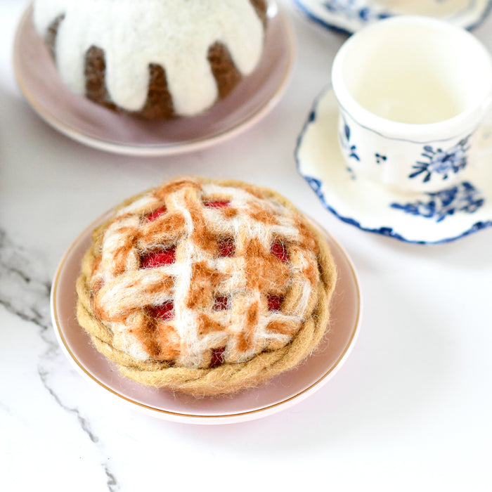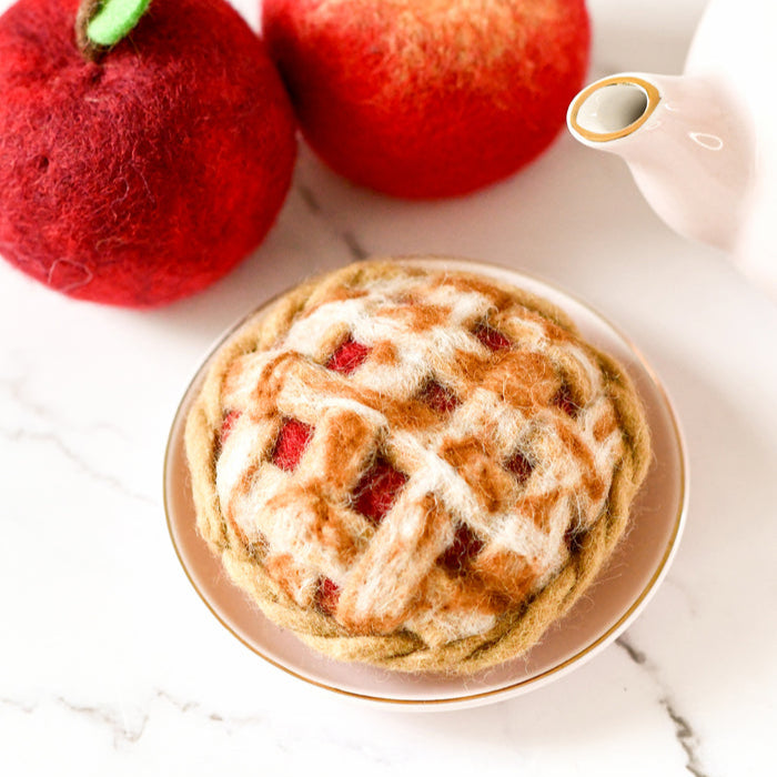 This listing is for 1 Lattice Pie. Each pie has been meticulously needle- felted with dense wool that has been dyed with non-toxic colours, making it safe for play.