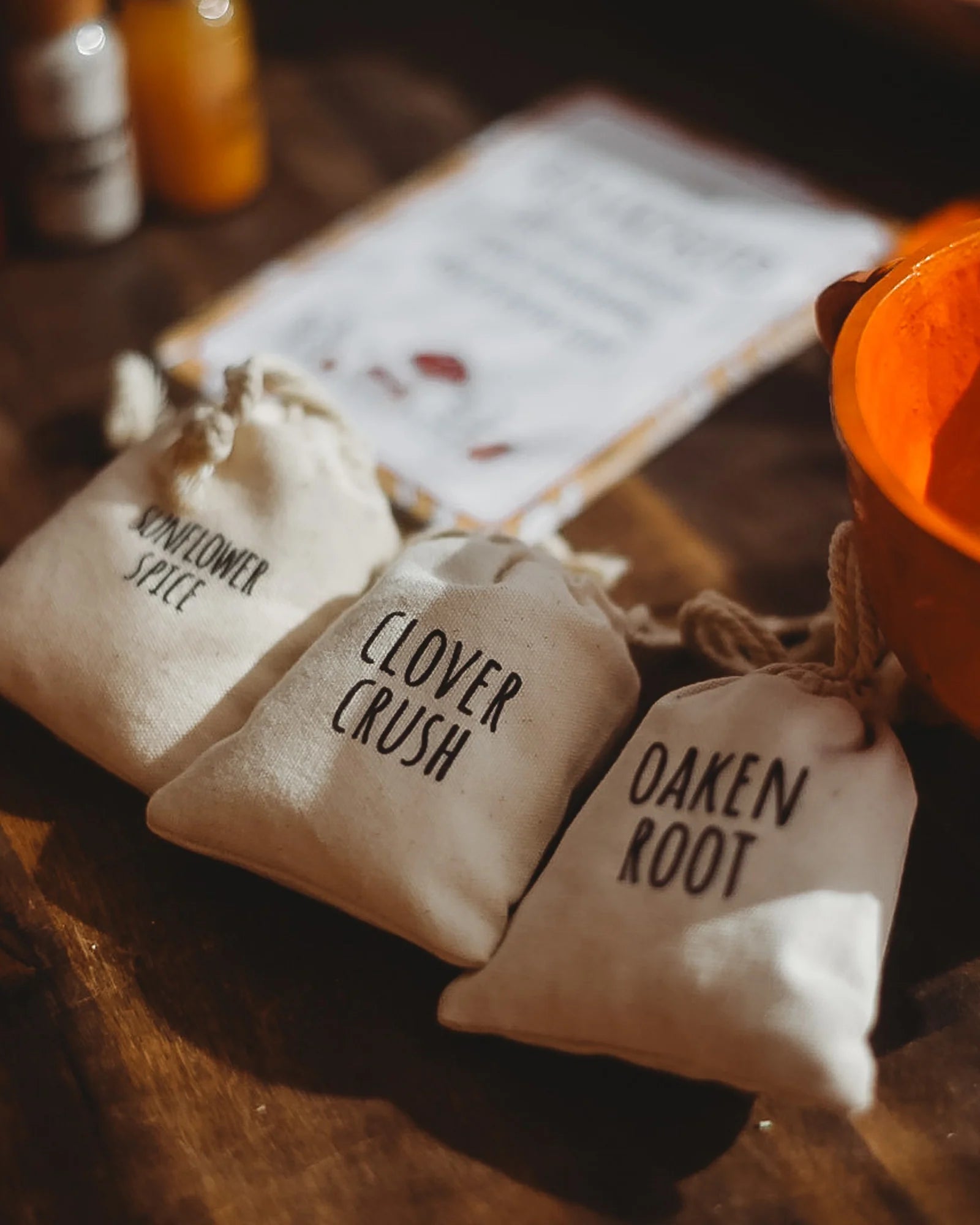 • 3 x dry ingredients in cotton pouches.