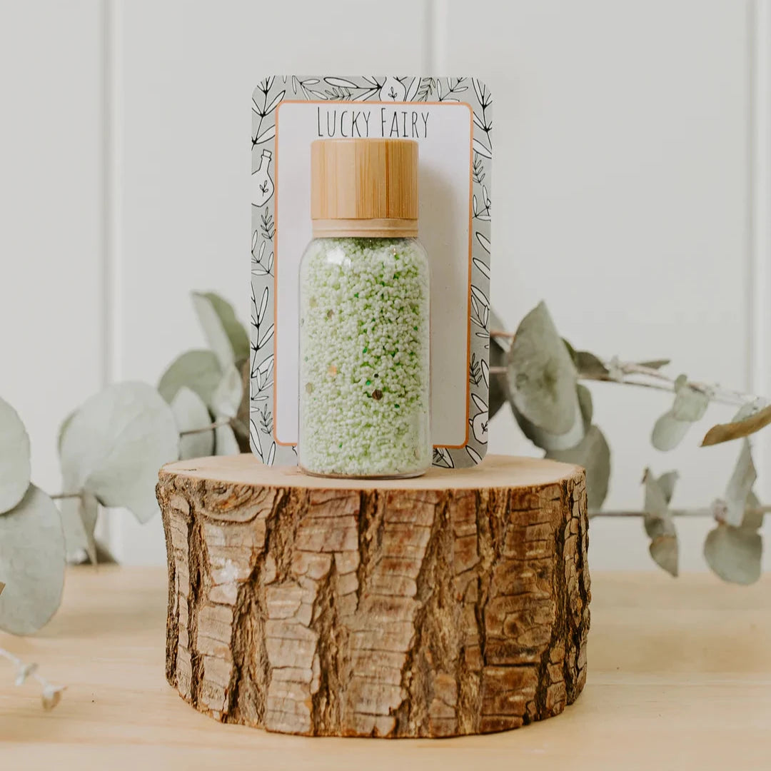I am the LUCK fairy. I have a deep connection with earth and like to bring new growth and health during times of change. I love to use my green sparkles in times when I feel nervous or anxious. Use my dust in potions to help with nerves in times of change or in potions related to growth. Be careful where you leave my sprinkles, it may grow lucky money trees.