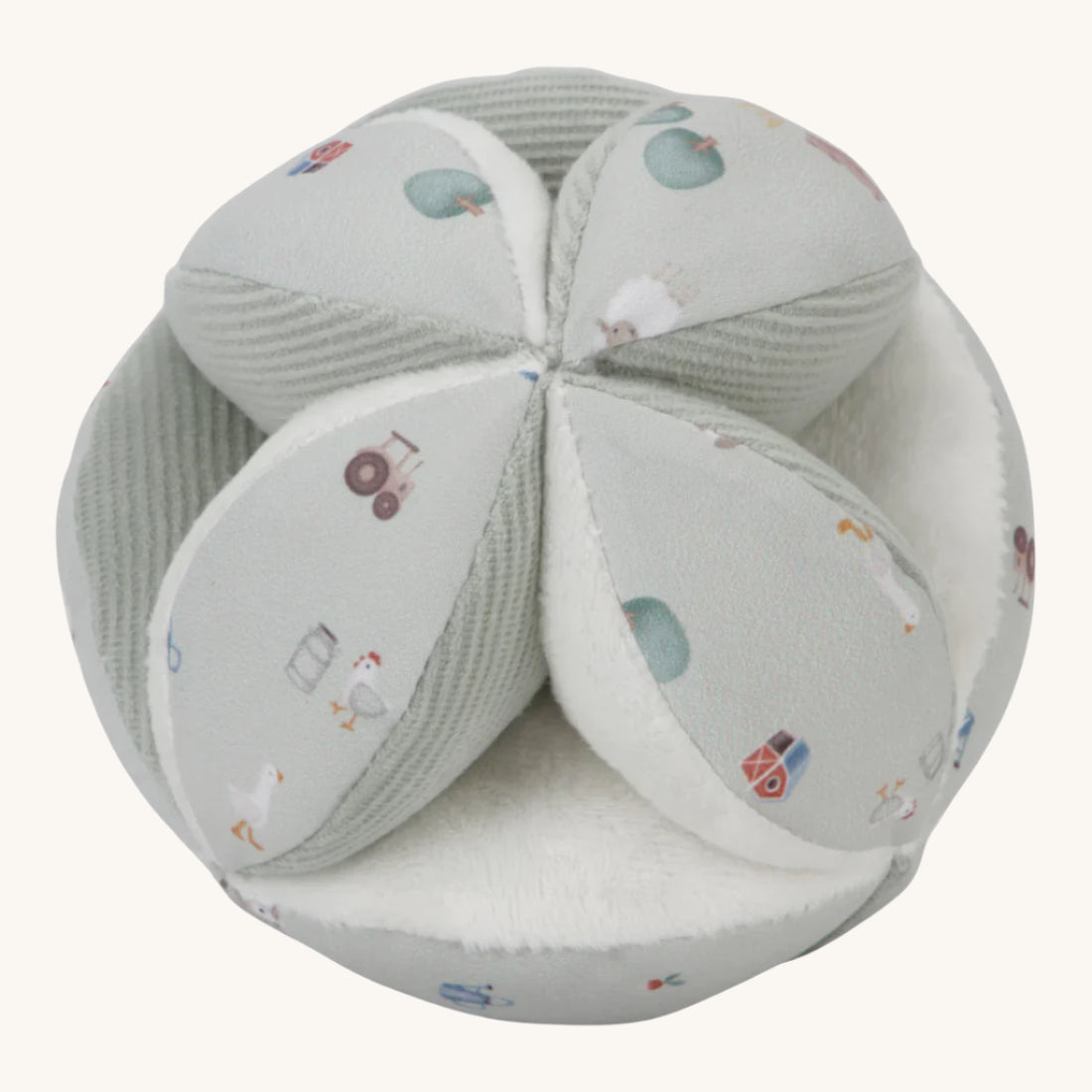 Overall, the gripping ball from the Little Farm collection offers a combination of interactive play, tactile stimulation, and auditory rewards, making it an engaging and stimulating toy for babies to enjoy in the playpen or during playtime.