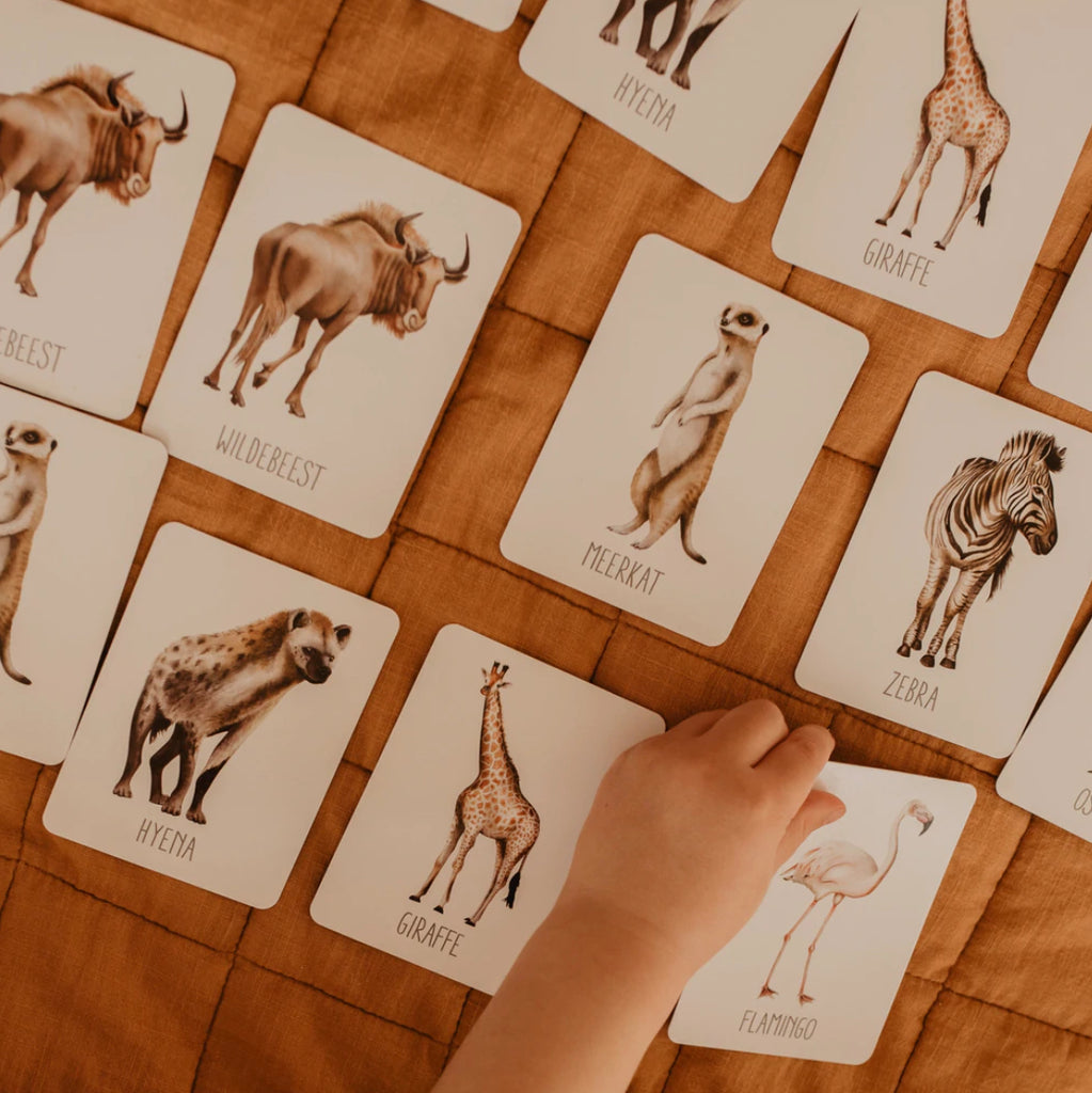 Get your hands on this amazing, modern take on the classic memory game! The beautiful Africa themed art work is exclusive to Modern Monty by Brisbane watercolour artist; Amanda Borchers. Amanda's art captures the spirit of the wild, with natural, life-like colours and gorgeous Scandi simplicity. The realistic art is also intended to start conversations about the natural world around us.