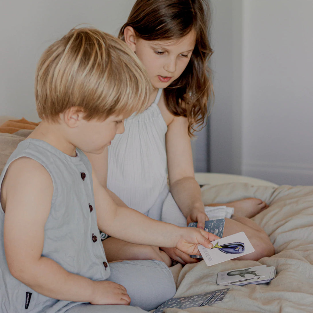All original watercolour art by Australian artist Amanda Borchers features the beautiful and iconic animals that live in the ocean. The art will prompt conversation and learning about Earth's beautiful creatures, while your little one will also learn skills to take turns, utilise strategy in game play, match pairs, utilise simple math, listening and memory skills and of course learn good sportsmanship.