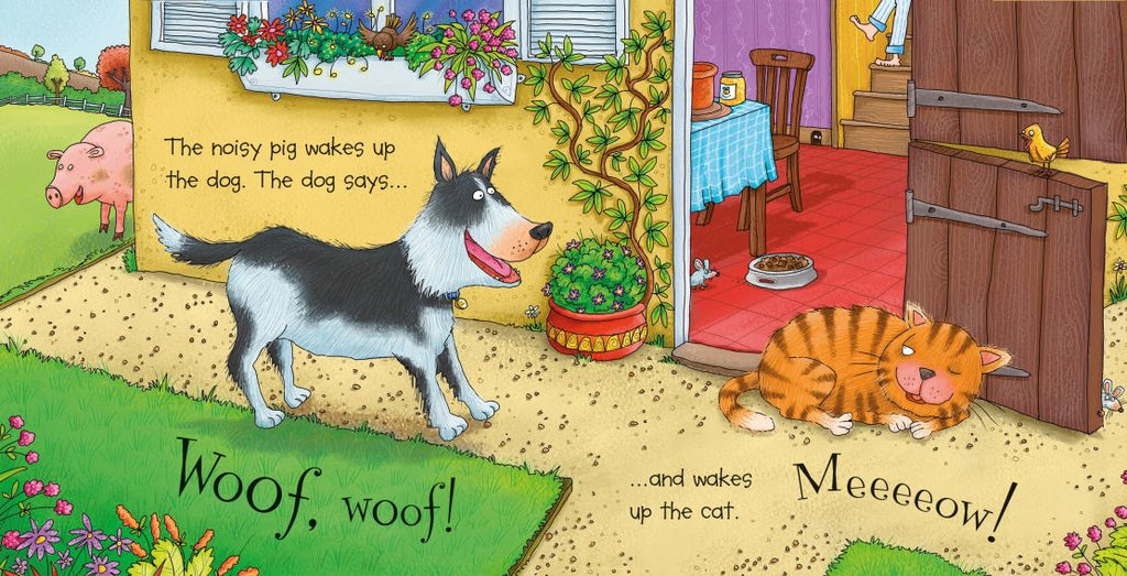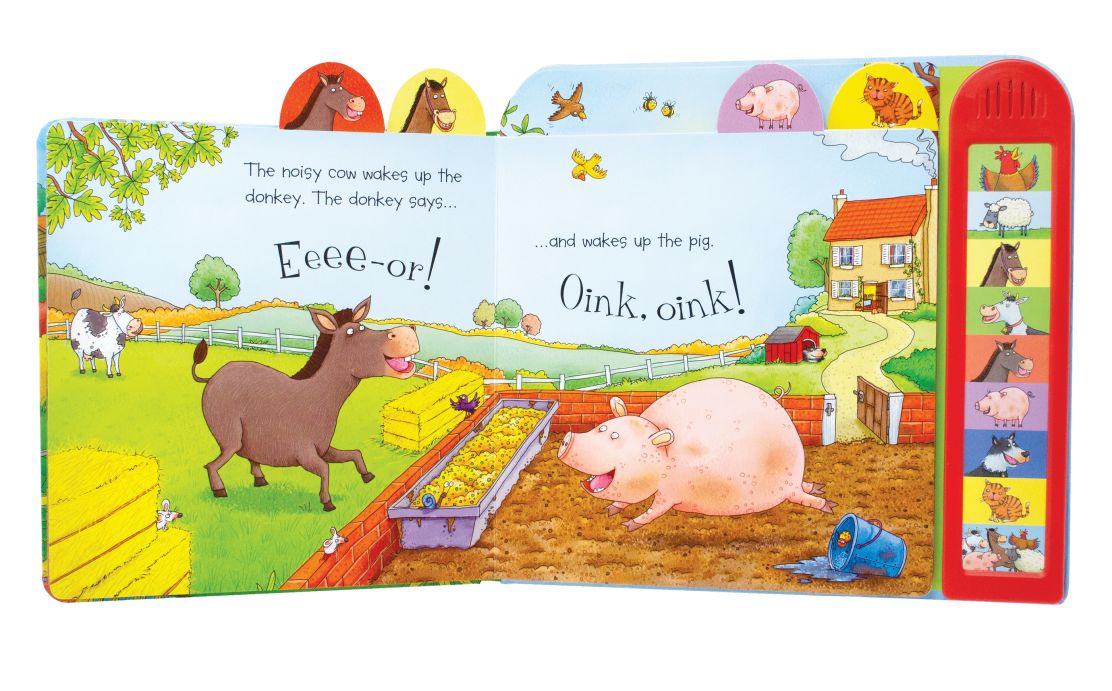 It's a peaceful morning on the farm, but things are about to get noisy! This lovely, big board book with a sound panel full of farm animal noises is perfect for sharing with small children. Little fingers will not be able to resist pressing the buttons to make the noises of all the animals on the farm, including a cockerel, cow, donkey, pig and a dog.