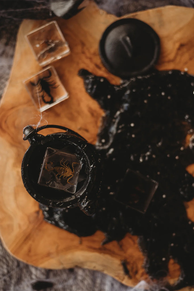 Each set includes six unique insects with each specimen measures approximately 40x40mm., and featuring: Golden Scorpion, Shining Leaf Chafer, Wolf Spider, Black Scorpion, Spiny Spider, and Spotted Lanternfly.