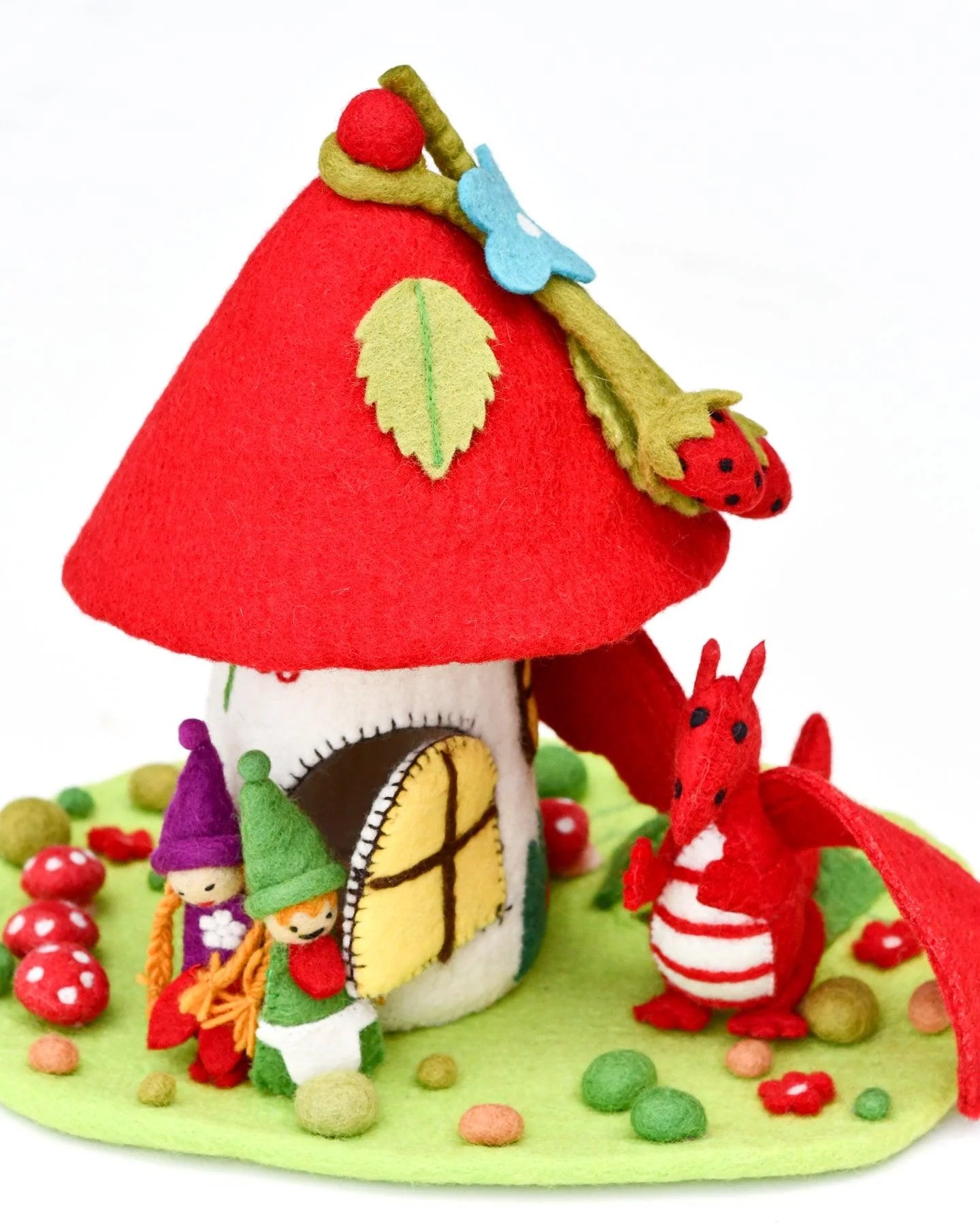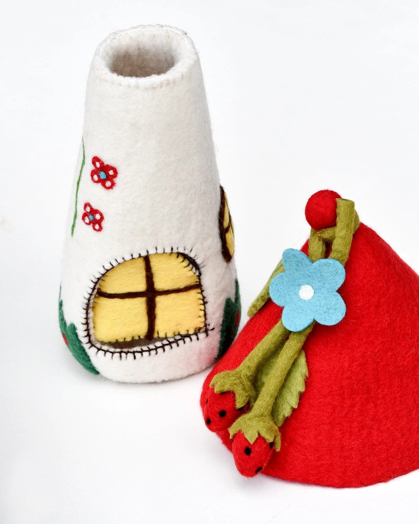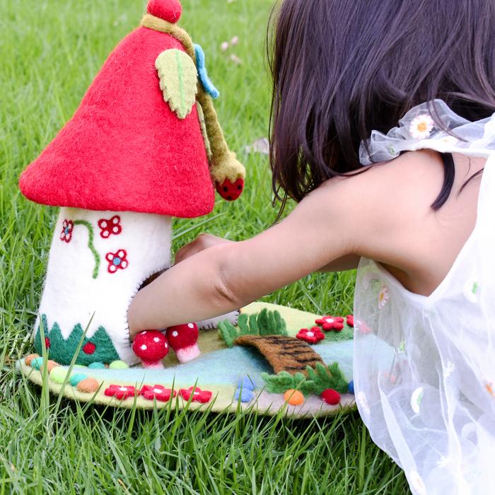 Build a magical playroom and create your own fantasy with our felt gnome houses. They have been designed in Melbourne and hand felted in Nepal. As with any handmade items, there may be some small variances.