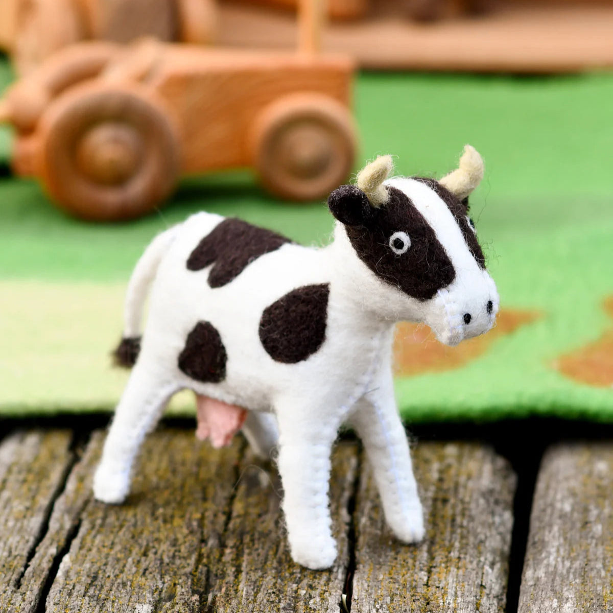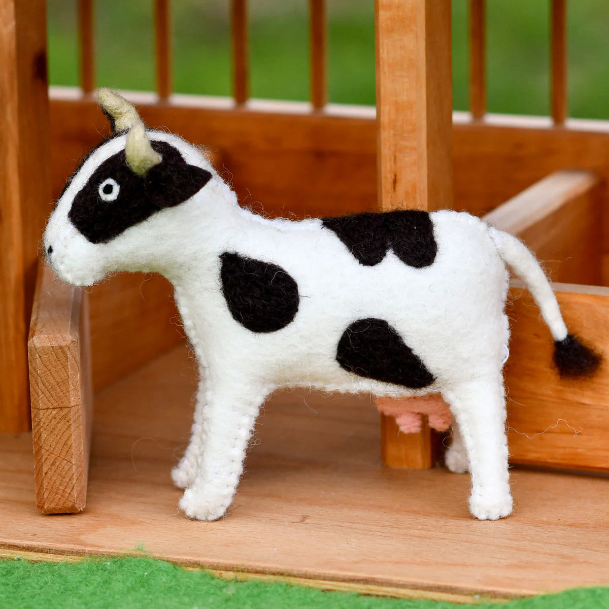 This felt cow is an excellent small world play toy, ideal for early childhood education and preschool settings. It helps develop fine motor skills, language development, and cognitive abilities through imaginative play.