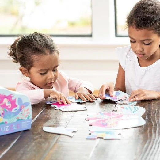 Pretty in pastel is Mermaid Dreams, our 12-piece mini puzzle, all wrapped up in a unique contour-shaped storage box. Perfect for puzzling enthusiasts aged 2+, the jumbo, sturdy pieces of this high-quality puzzle are ideal for little hands.