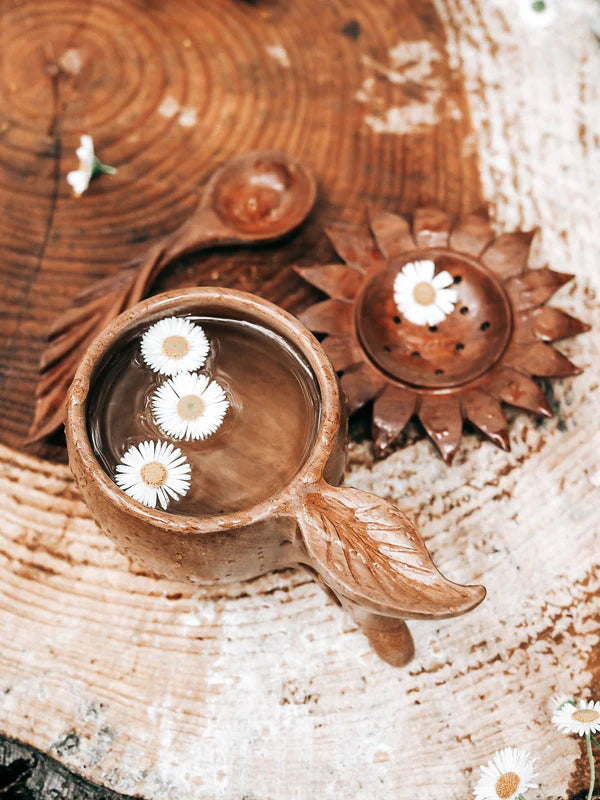 Use as a cup, a scoop, a bowl, a place to mix mud or even drink coffee. Yes Mama's this can just be your next favourite coffee mug. This ethically handcrafted cup has been designed with open ended play in mind. It sits on a sturdy perch with finger holes for easy carrying. The leaf handle feels beautiful tactile but can also serve as a holding place for botanicals and crystals as your mini mud kitchen chef whips up the next great mud pie of calls in the fairies with a little potion play.