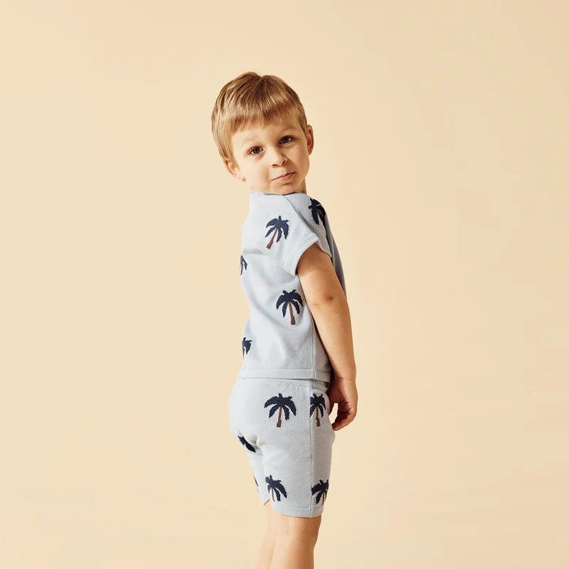 Look no further for cuteness overload than with this Little Palm Organic Knitted Set! Crafted from organic cotton with an all-over jacquard design, this lightweight, soft outfit is perfect for your little one's comfort and style. This set comes with a loose fitted short sleeved tee and mid-length fitted short.