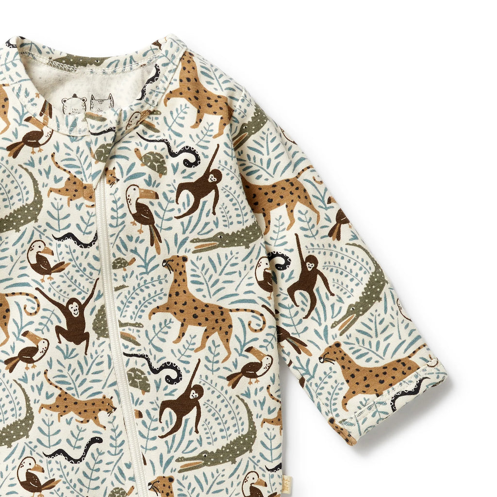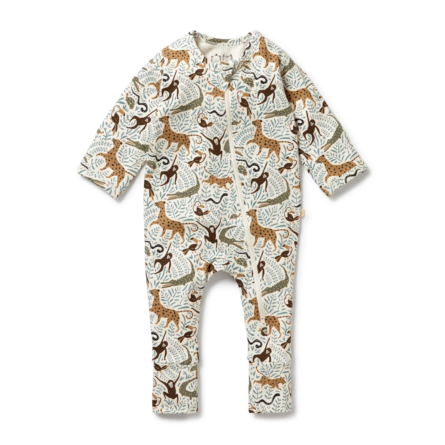Keep your newborn comfy with this practical yet adorable frosty friends organic jersey zipsuit with feet. The design features fold over mittens (Sizes newborn to 000) to protect your babies face from little fingernails, and the option of a footed foot for growing bodies. Crafted from GOTS-certified organic cotton, it is gentle on your babies sensitive skin, and extra handy when having to make nappy changes. Features a gorgeous hand-illustrated print.